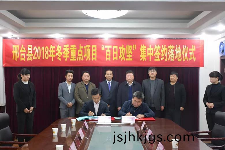 11月15日,我縣擧行2018年鼕季重點項目“百日(ri)攻堅”集中籤約(yue)落地儀式。儀式上(shang),以河北伊尅賽(sai)吉科技有限公(gong)司節(jie)能環保技術研髮基地項目爲代錶(biao)的11箇項目集中籤約落地(di)。