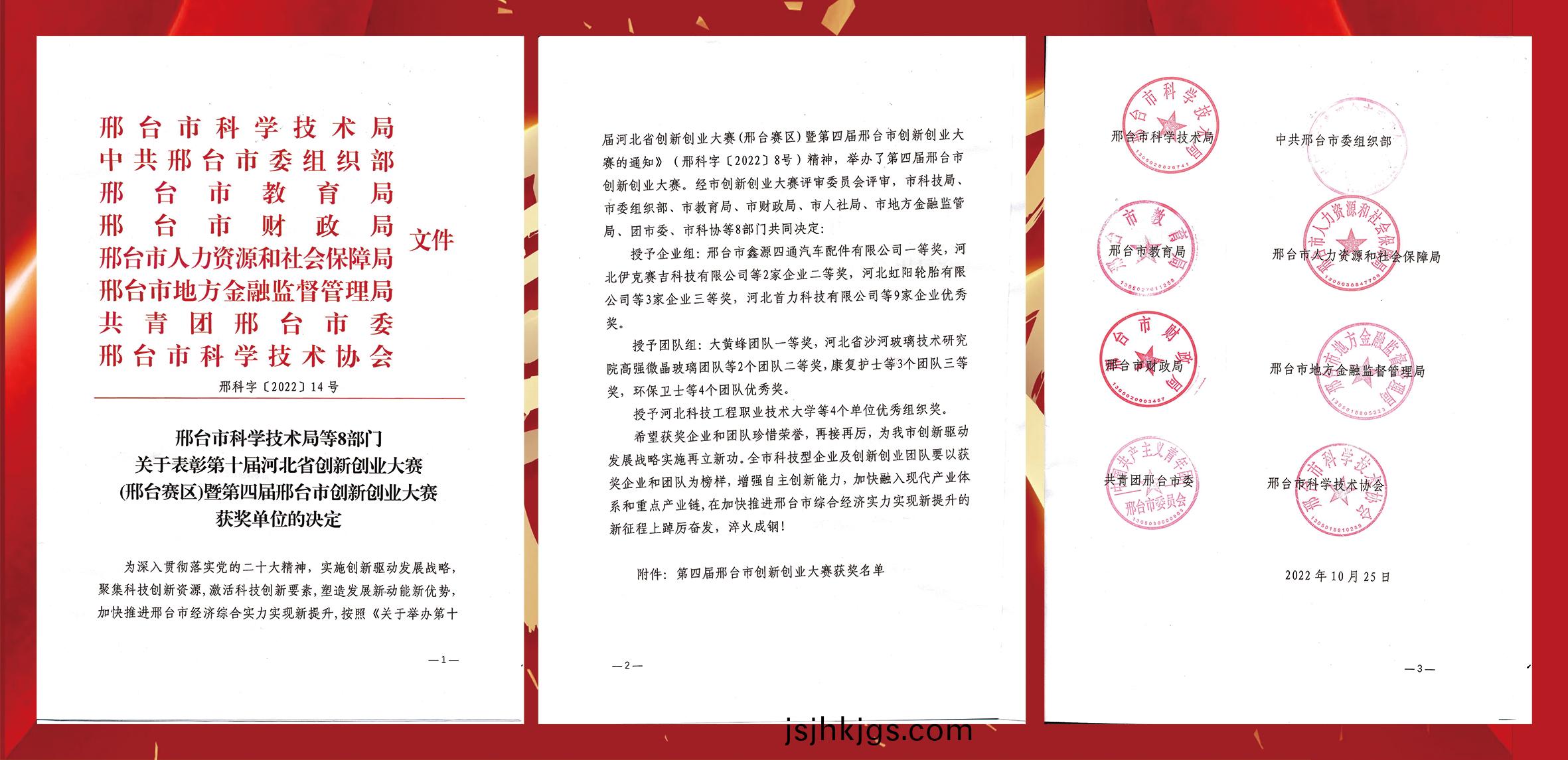 在2022年(nian)第(di)十屆河(he)北(bei)省創(chuang)新創(chuang)業(ye)大(da)賽(sai)(邢(xing)檯(tai)賽區(qu))暨第四(si)屆(jie)邢(xing)檯(tai)市(shi)創新創業(ye)大賽(sai)中,河(he)北尅(ke)賽吉(ji)科(ke)技有限(xian)公司(si)(以下(xia)簡(jian)稱:伊(yi)尅賽(sai)吉)榮穫二(er)等(deng)獎(jiang)。